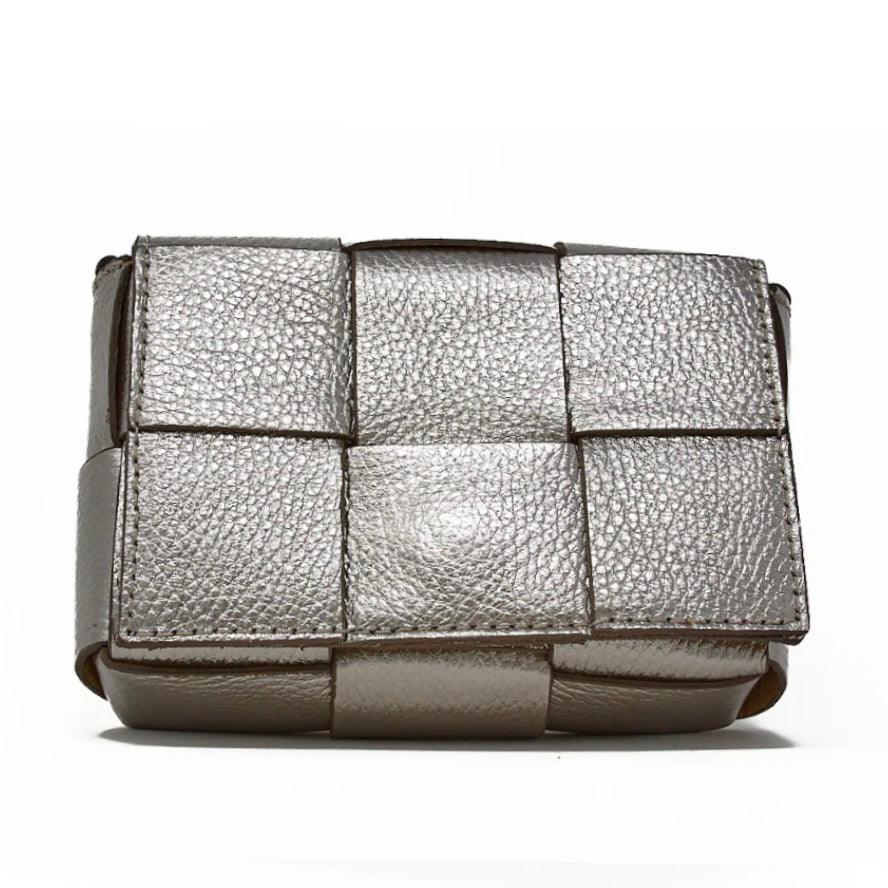 Crafted from genuine Italian leather, the Box Mini Bag in Pewter combines timeless style with everyday practicality. Its elegant braided design and gold hardware add a touch of sophistication, while the removable, adjustable crossbody strap offers versatile wear options. Secure your essentials effortlessly with the foldover front snap closure, making this bag the perfect companion for any gameday or occasion.