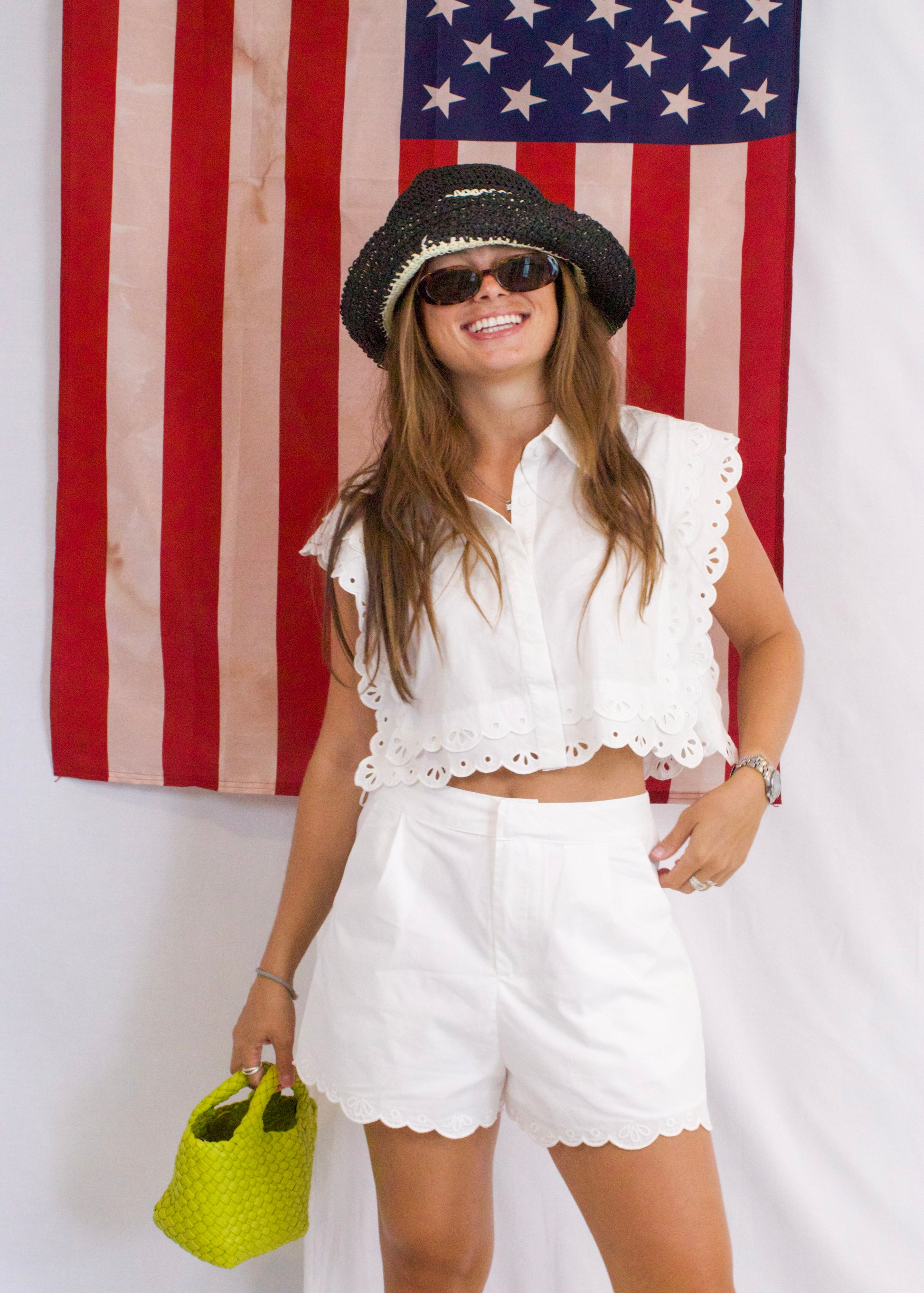 The Willow Eyelet Top and Short Set in Off-White is your new summer essential, blending playful charm with effortless comfort. Made from crisp 100% cotton, the cropped button-up top features delicate scalloped eyelet trim and a breezy sleeveless design. The high-rise shorts offer a relaxed fit with an elastic waistband and matching scalloped hems, keeping you cool and stylish all day. Perfect for sunny weekends or casual outings, this set brings a fresh, polished look that’s as breathable as it is beautiful.