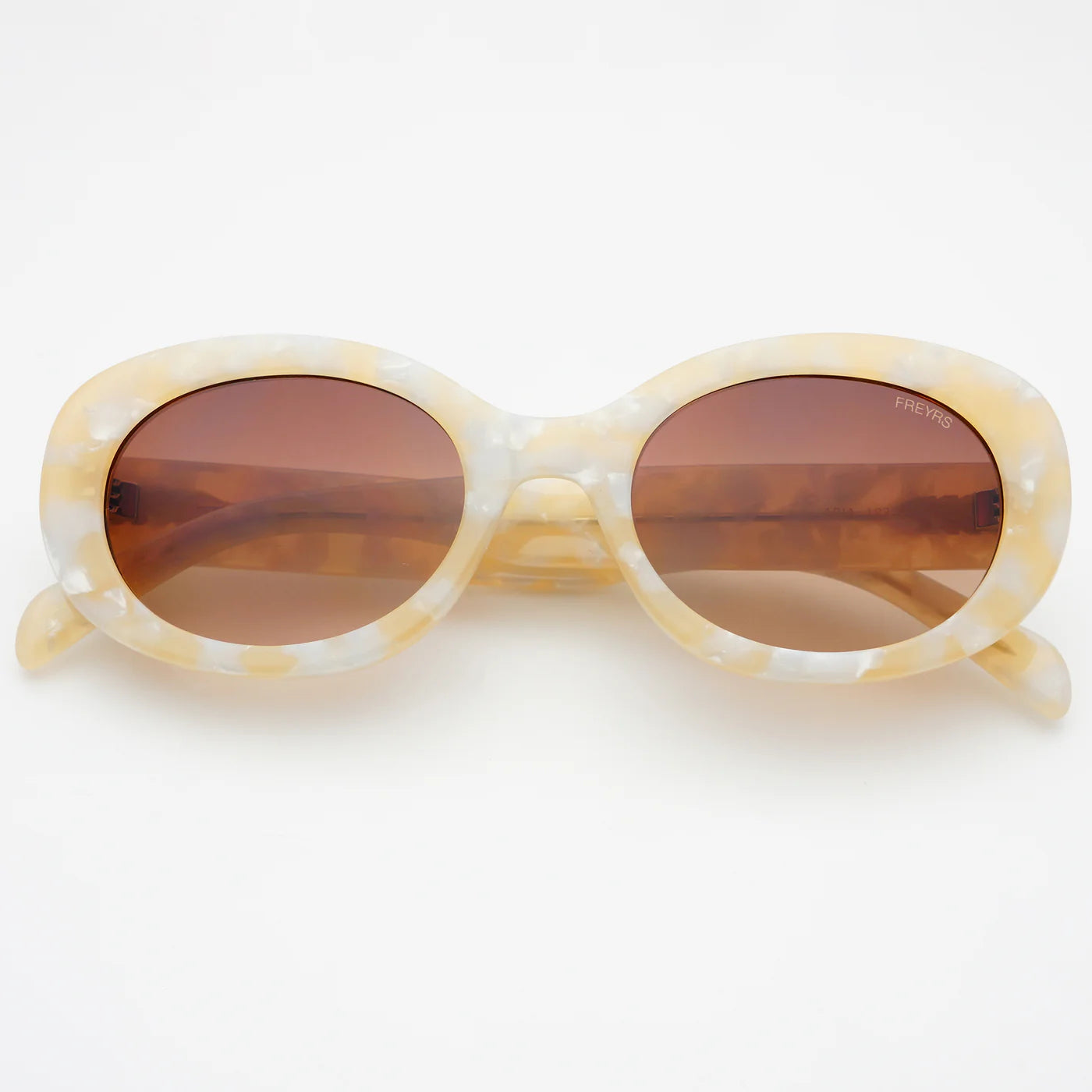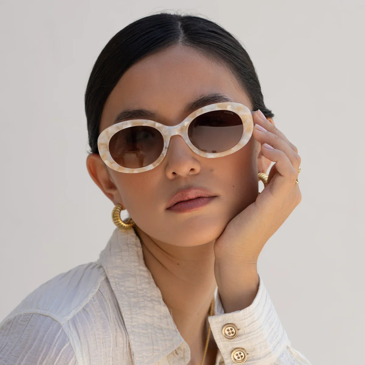 Discover FREYRS Aria in Light Pearl, the perfect blend of style and function. These women's sunglasses feature a sleek, biodegradable acetate frame paired with durable premium stainless steel hinges for lasting comfort. Equipped with 100% UV protection nylon lenses, they shield your eyes while complementing any outfit. Lightweight and versatile, Aria sunglasses come complete with a box, case, and cleaning cloth—making them an essential accessory for every occasion.