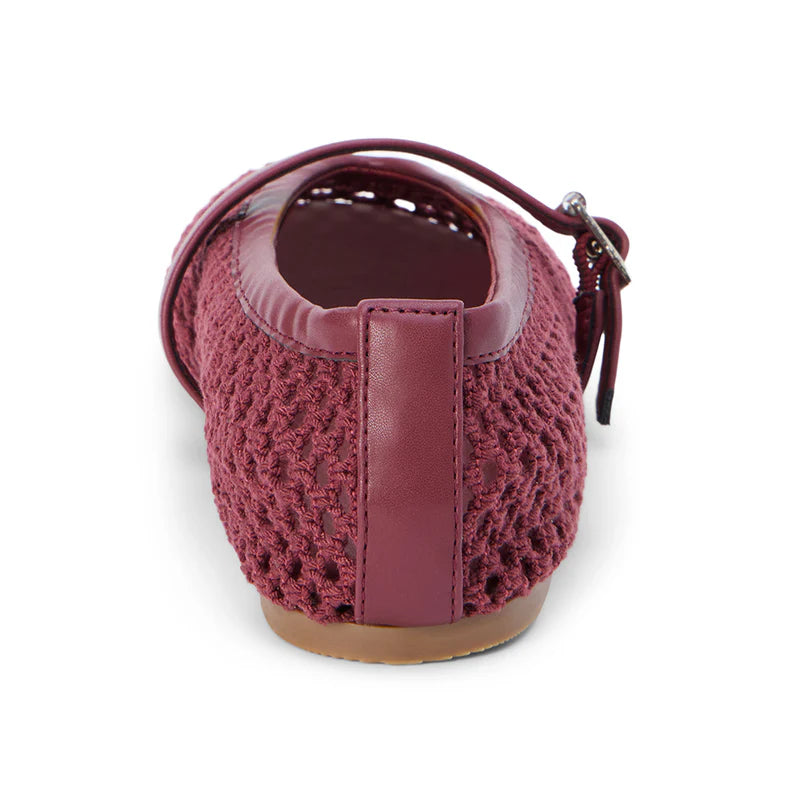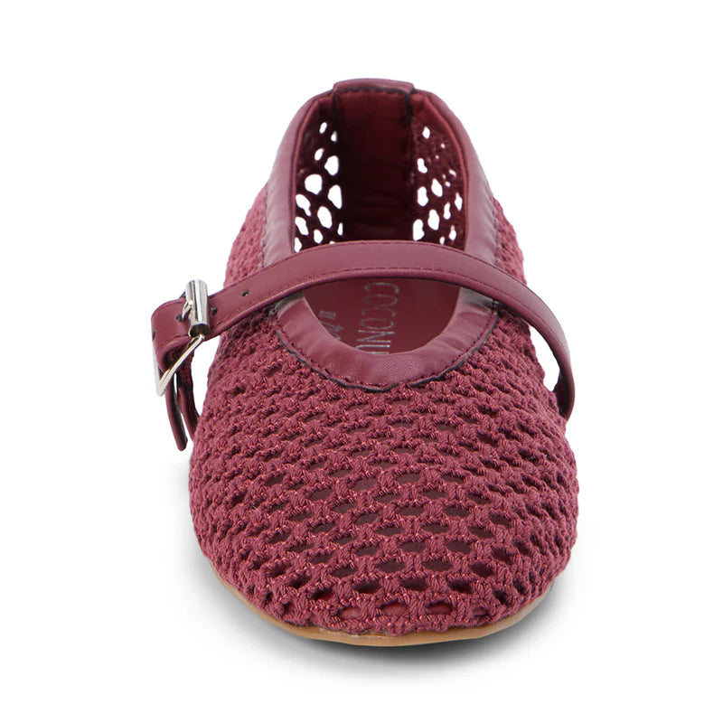 Step out in style and comfort with the Nolita Mesh Ballet Flats, Coconuts by Matisse in Burgundy. Crafted from sustainable textile materials, these vegan Mary Janes feature a padded, unlined insole and a secure buckle closure for all-day wearability. The synthetic sole offers durability, making them perfect for everyday elegance with an eco-friendly touch.