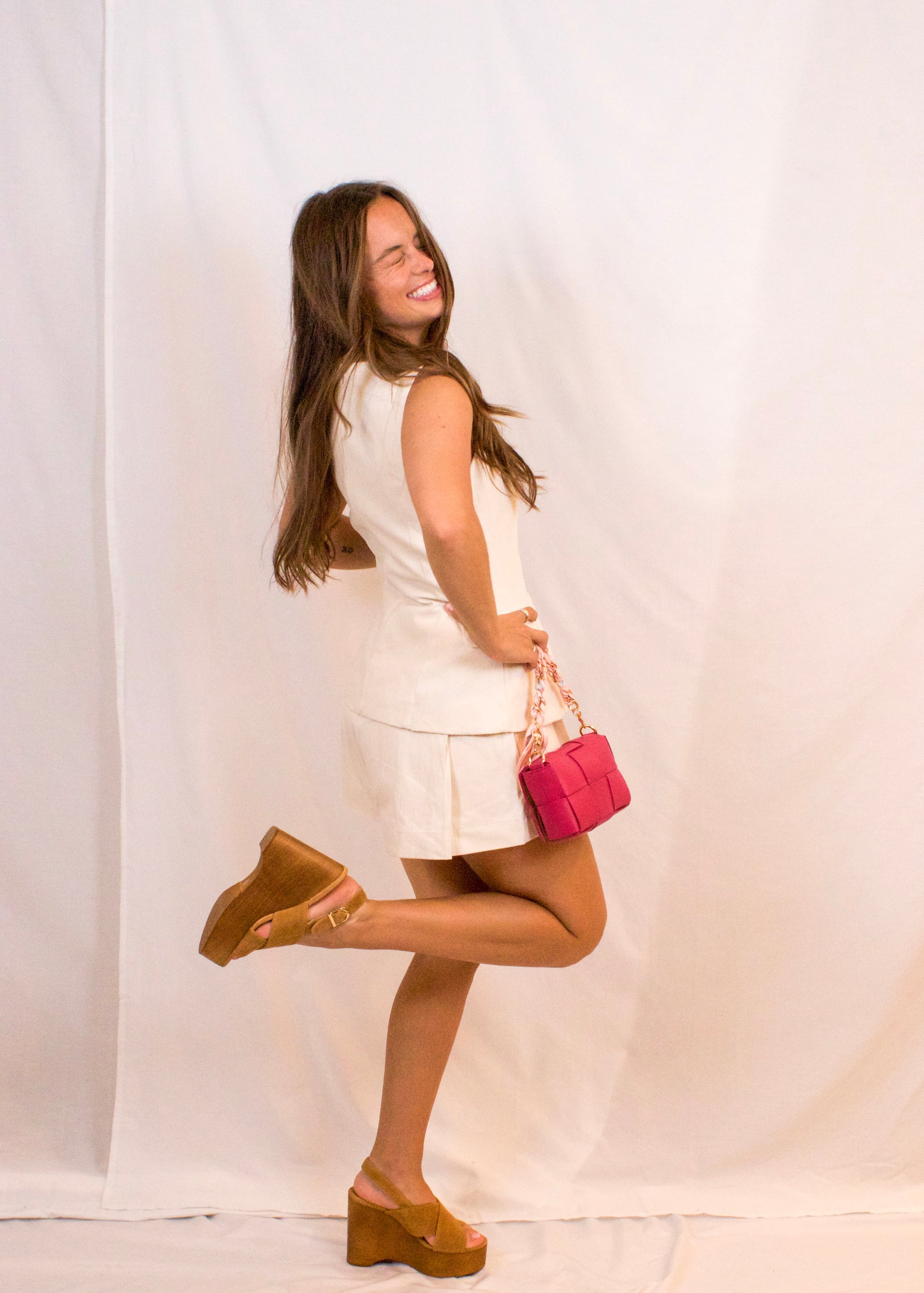 Sail away in style with the Veni Top from Line and Dot in Ecru! Crafted from midweight, non-stretch fabric, this top features a flattering boatneck and sleeveless design. The faux flaps add a touch of playful detail. With a hidden zip and hook-and-eye closure, it's fully lined for comfort. Perfect for any occasion!